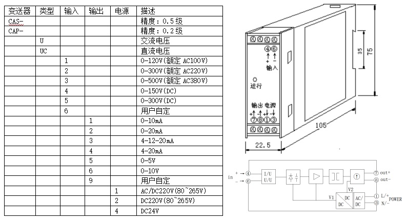 參數(shù):交流、直流電壓測量,變送輸出