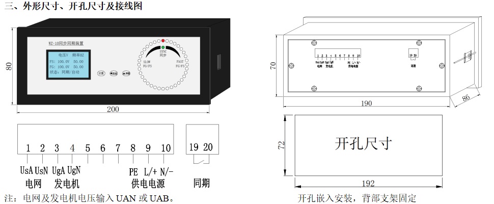 參數(shù):發(fā)電機同步同期并網(wǎng),單、三相