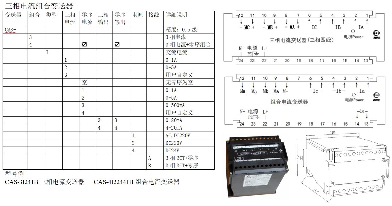 CAS系列電量變送器是將被測交直流電流、電壓等信號轉(zhuǎn)換成按線性比例輸出直流電流、電壓并隔離的設(shè)備。
