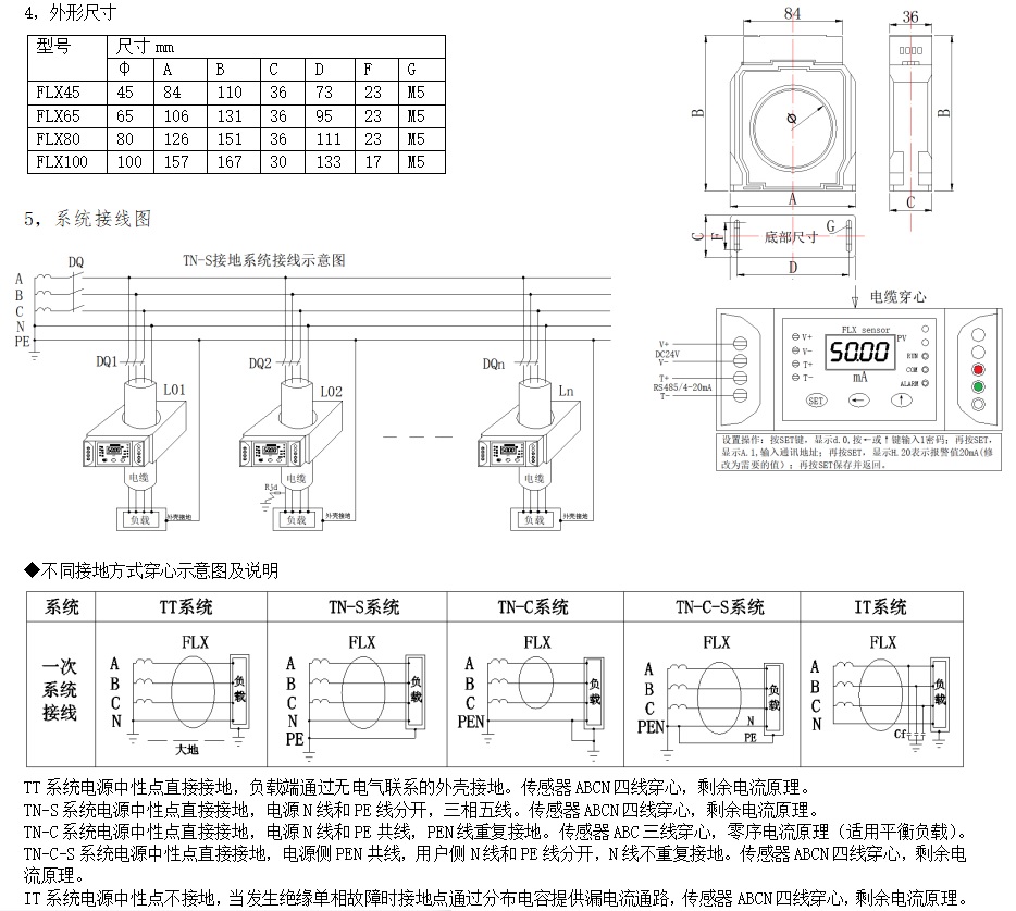 FLX□□-500測(cè)量電流范圍:0.5mA-500mA(45HZ-400HZ)